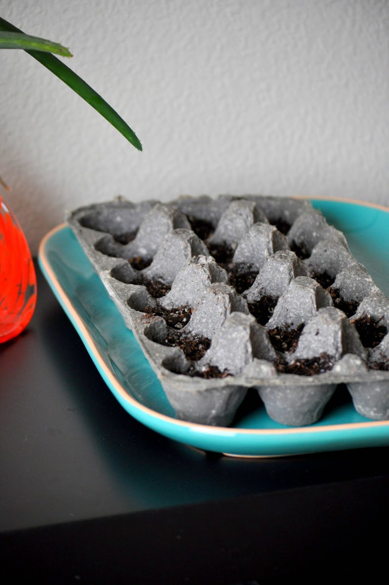 My Basil babies. Every year I start my little family and watch them grow up to eventually graduate to outside homes. I love them. And in a couple months I’ll just cut up the egg carton and transplant since the carton is biodegradable and, would be at that point, falling apart anyways. Easy peesy and a great activity I do with Emma.