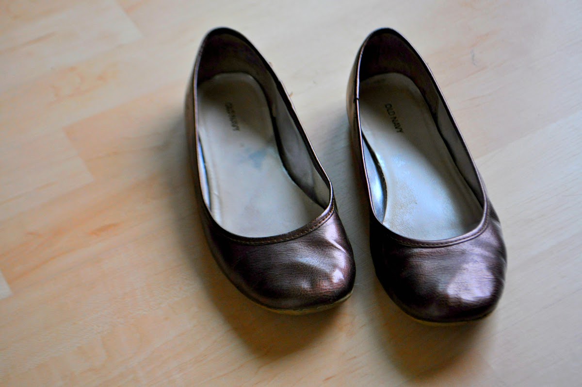 Wonderful Old Navy. I believe these flats are at least 2 years old. Just remember to wipe down your shoes so any dirt or dust is gone before gluing.