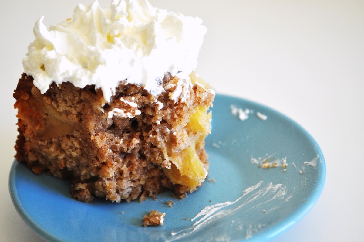 I am a little weird and think mostly all apple desserts taste better cold. Including pies, tarts or cakes. So you can eat this warm, but I prefer it chilled. 🙂 You can leave it plain, sprinkle with powdered sugar or do what I did and put some whipped cream on top.