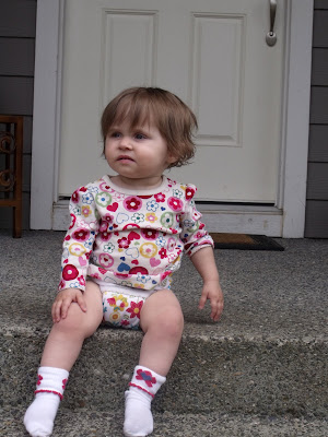 These pictures are on the front steps to our town home. And yes, she is wearing cloth diapers. Trav and I decided to do that before she was born and it’s worked out great for us. Isn’t the diaper cover match her shirt perfectly?! Oh, and I’m making cranberry banana bread in the oven right now- I’m feeling good!